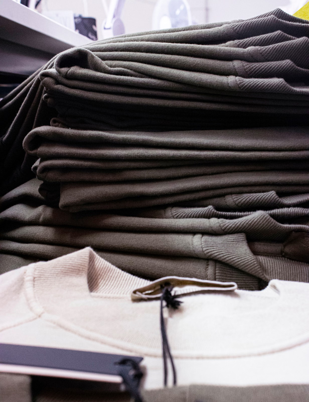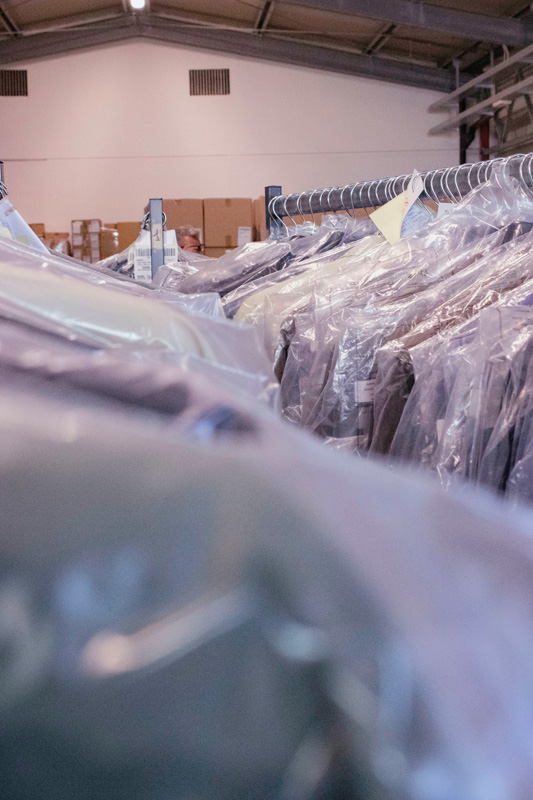 Ogni articolo viene suddiviso con cura per taglia e colore, garantendo un’organizzazione efficiente e un rapido accesso ai prodotti.